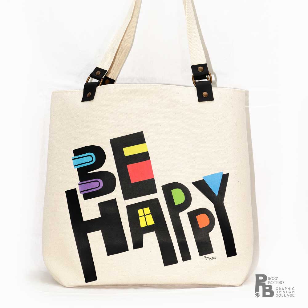 Este bolso lleno de color y estampado con un collage con palabras llenas de positivismo y empoderamiento es una pieza original, hecha a mano que le dará a tu vida mucha luz y buen rollo.