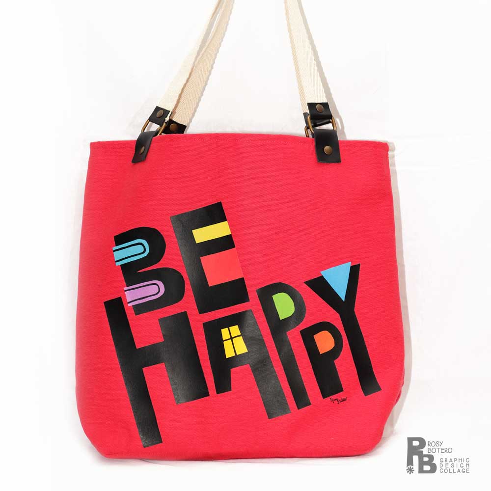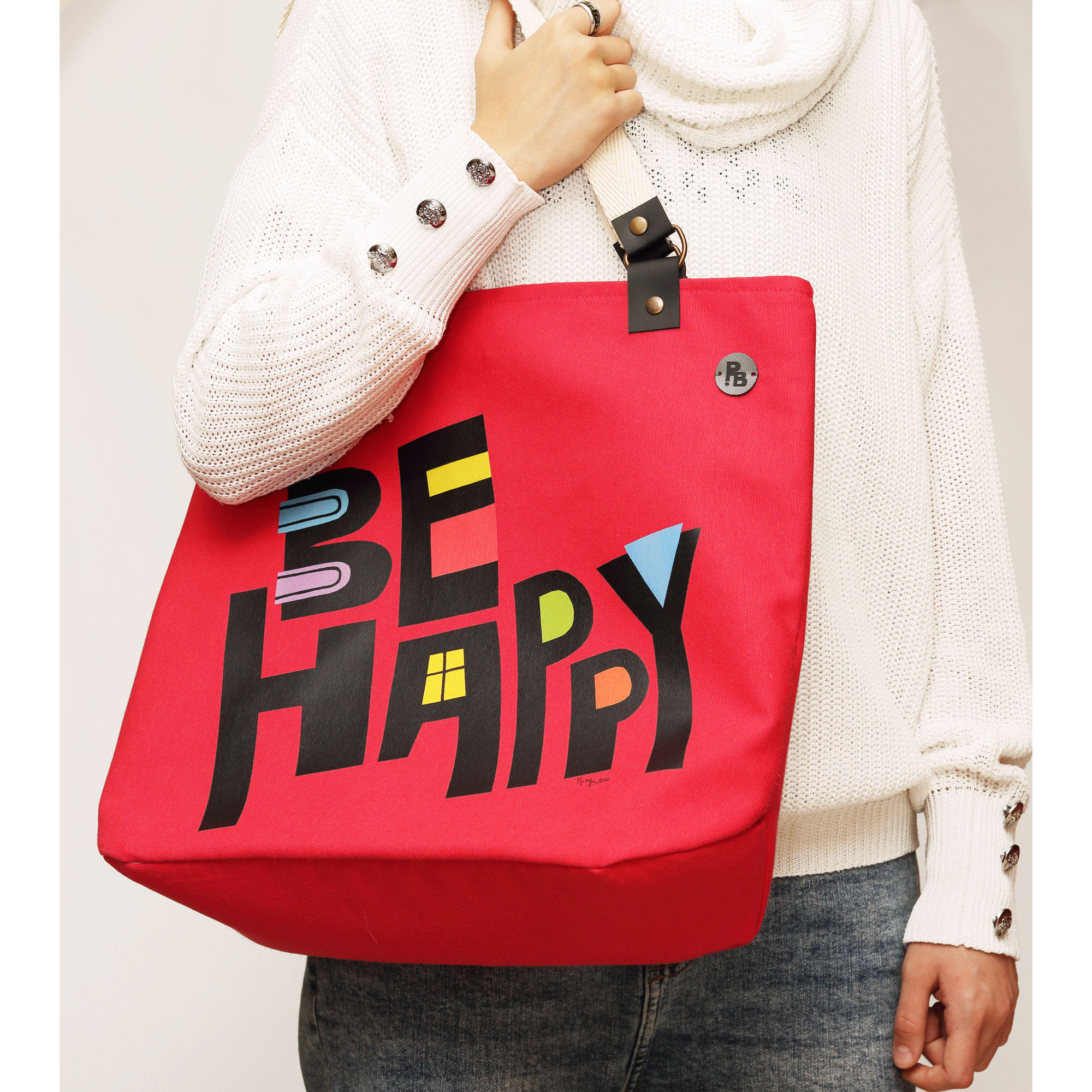 Bolso Rojo «Be happy» con terminaciones en piel en el asa