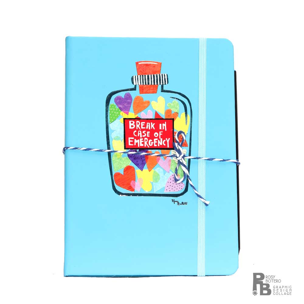 Cuaderno celeste «Break in case of emergency»